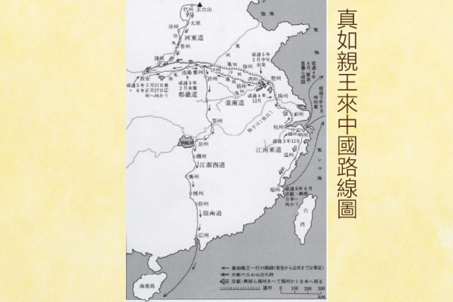 公元八六五年,真如帶同三個隨從,安展、丹覺及秋丸,從西安離開長安,出發去廣州,走一條很特別通道。
