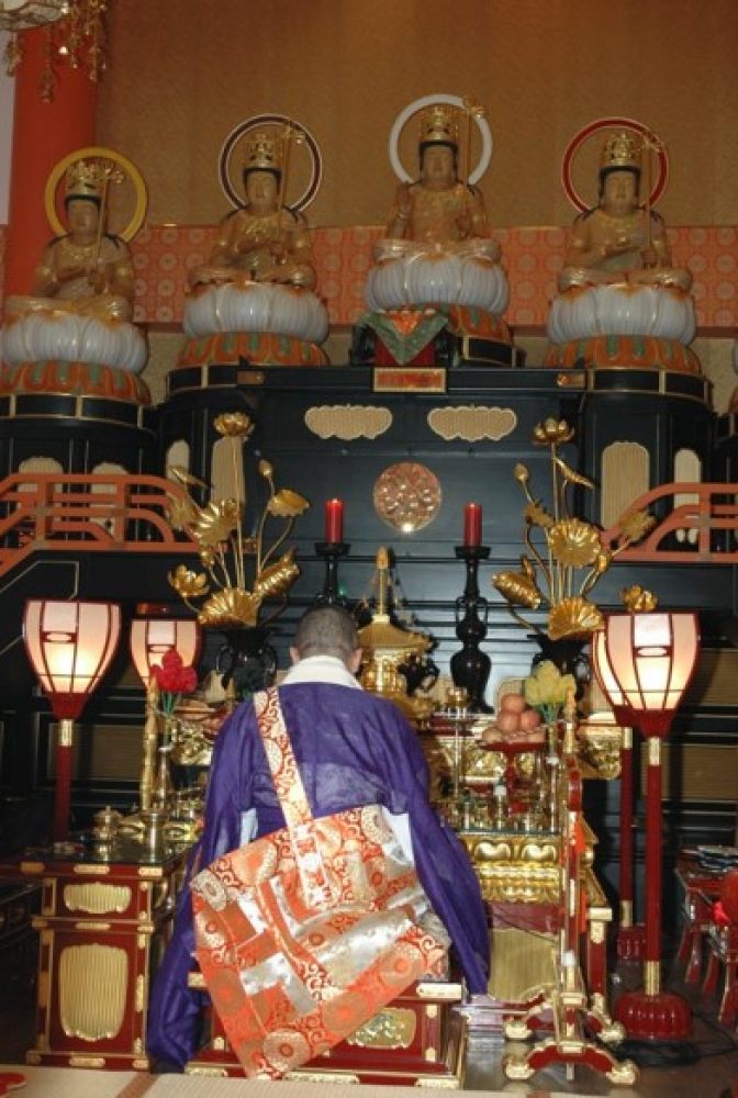 前額著地是代表為眾生提供方便法門;法門分成權、實二類: